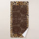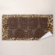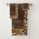 Estas toalhas beges creme apresentam uma design de patchwork cativante inspirada pela vida selvagem africana. Os motivos de guepardo entrincheirados entrelaçam com padrões geométricos em um rico marrom Hershey, celebrando a beleza natural do continente.
