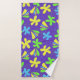 Bolhas florais coloridas num fundo roxo