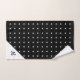 O conjunto de toalhas personalizadas chic apresenta pequenas bolinhas brancas em um plano de fundo preto com um monograma de script preto em um triângulo branco no canto inferior direito de cada peça. Personalize-o com a sua inicial na barra lateral. Comprar o conjunto de cheios ou qualquer parte dele. Para ver o padrão geométrico em outros itens, clique no link "Artes Rocklawn". Imagem criada digitalmente. Copyright ©Claire E. Skinner. Todos os direitos reservados.