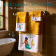 Conjunto De Toalhas Sereia com cabelo e cauda turquesa