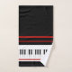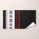 Este conjunto de toalhas de banho balnear é perfeito para pianista e músicos. O conjunto apresenta um teclado de piano envolto em um fundo branco, preto e vermelho. listras. A Serenade do teclado também tem um tapete de banho correspondente, um banho e uma cortina de chá. O conjunto é constituído por um pano de lavagem, toalha de mão e toalha de banho. As peças podem ser compradas individualmente ou como um conjunto.