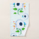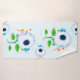 Este trabalho de arte de conjunto de toalhas de girassol apresenta elementos florais contra um fundo branco sólido com pinturas coloridas e linhas diagonais escuras de turquesa, criando uma elegante profundidade e abstrato de contraste de textura.