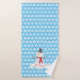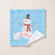 Este belo banho Toalha apresenta um boneco de neve, com um chapéu de cima contra fundo de floco de neve. Você pode personalizar o texto no banner branco e o fundo azul também pode ser alterado.