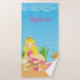 Toalhas de banho adoráveis com uma princesa loura bonito da sereia na rocha, cercada o coral, os caranguejos, os peixes e o marisco e um fundo azul. É uma grande ideia do presente. Personalize com seu próprio texto especial. Artigos de harmonização disponíveis em nossa loja. Alguns gráficos pelo urbanwillow.