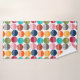 Este conjunto de toalhas tem um pano de lavagem verde, uma toalha de mão azul, e uma toalha de banho com um design moderno do século médio de semicírculos estriados e semicírculos sólidos reunidos num campo de branco.
