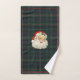 Conjunto de Toalhas de Banho com um lindo fundo xadrez tartan vermelho e verde e adorável rosto alegre do Papai Noel vintage