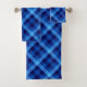 Um conjunto de toalhas de banho com um design de padrão de xadrez legal em azul-oceano bonito.