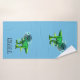 Neste encantador conjunto de toalhas está um dinossauro bucal aberto com dentes afiados de lâmina esperando por uma batalha com uma espada em suas mãos pequenas. Perfeito para qualquer criança que ama o espírito dos dinossauros. Pode ser personalizado no fundo com um nome para torná-lo exclusivamente seu.