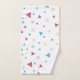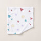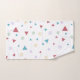 Toalhas de banho modernas, fofinhas e cônicas, com formas geométricas de triângulos e espirais em verde pastel, amarelo, vermelho e violeta.