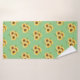 A Toalha Tricolor Sunflower Toalha Set está numa bonito horta/verde claro, toalha manual feita em castanho e lavando o pano em amarelo. E Cheio de girassóis.