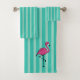 Conjunto De Toalhas Turquesa Retro Flamingo Bath Toque Presente