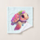 Toalha armada com uma bela ilustração de uma tartaruga marinha. Corpo rosa e casca com cobertura floral. Parece feliz e adorável.
