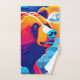 Uma impressionante obra de arte digital com um urso colorido olhando para uma paisagem ao luar, perfeita para amantes da natureza e aqueles que apreciam cores vibrantes e ousadas (Este Design Feito Com IA). Faça o Pedido Hoje e Abrace a Alegria de Comprar!