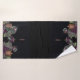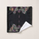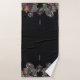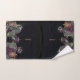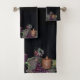 Esse conjunto de toalhas pretas de pano de fundo é um impressão de tema vinho, uvas e vela e, com outros decores, poderia fazer um banheiro bem coordenado e de estilo.