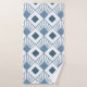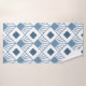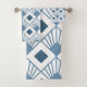 Este conjunto de toalhas tem um design de arte de diamantes azuis empoeirados com linhas diagonais e diamantes azuis escuros em um campo de branco.