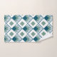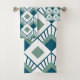 Este conjunto de toalhas tem um design de arte de diamantes lacrimogêneos com linhas diagonais e diamantes verdes de mar em um campo de branco.