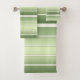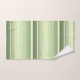 Uma bela toalha de banheiro listrada colocada em diferentes tons de verde com marfim.