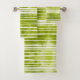 Conjunto de toalhas de bandeja de bandeja branco e verde em faixas de água.