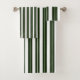 Conjunto de toalhas de banheiro verde e listrado branco.