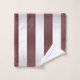 Moderno conjunto de toalhas de banho listradas. Cores brancas, cinzentas e brilhantes, vermelhas sombreadas. Elegante decoração moderna.