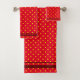 Conjunto De Toalhas Vermelho Com Bolinhas Amarelas E Banhas Vermelhas