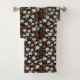 Bright, white flowers with green, orange, and gold leaves on a dark background makes this towel set outstanding! Bright and beautiful, and sure to be a favorite!
