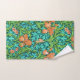Toalha colocada em um William Morris, Art Nouveau, impressão têxtil de iretos e folhas, digitalmente melhorada e colorida, em aqua laranja, verde limão e mole, sobre fundo de turquesa profundo