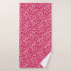 Toalha colocada numa vintagem William Morris cor damasco destas flores e folhas, em cor-de-rosa fuchsia profundo, sobre fundo cor-de-rosa pastel, melhorada digitalmente e colorida