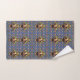 A barba - A obra de arte original de ZoeSPEAK neste Conjunto de Toalhas de Banho é um padrão feito com um retrato do autor William Shakespeare. O retrato está em um quadro de ouro oval de ornamentado com fitas e uma coroa no topo. O papel de parede de fundo azul é decorado com castelos, coroas de reis e flores amarelas e vermelhas, trazendo à mente o romance, a tragédia e a comédia de suas peças e poesia.