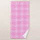 Estas toalhas de banho inspiradas em uma fazenda têm um padrão de xadrez de gingham branco e rosa giro.