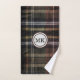 Este conjunto de toalhas foi criado para ele. Ele apresenta um design xadrez marrom masculino com um espaço para um monograma. Este conjunto de toalhas foi criado a partir de uma foto de um cobertor xadrez marrom de flanela aconchegante.