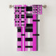Este conjunto de toalhas apresenta uma reviravolta moderna na xadrez em tons de rosa, cinzas, preto e branco.
