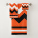 Estas características ajustadas bonitas de toalha e de washcloth do banheiro um design alaranjado, preto, e branco bonito do ziguezague.
