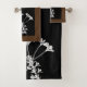 Preto com floral branco é uma toalha de banho em greve. Este conjunto complementará qualquer combinação de cores. Estilo: Conjunto de Toalhas Transforme seu banheiro em seu próprio oásis pessoal com uma toalha personalizada perfeita para secá-lo com estilo. Dimensões: inclui uma toalha de banho de 30" x 60", uma toalha de mão de 16" x 28" e um pano de lavagem de 13" x 13": a frente é uma mistura de poliéster, a parte traseira é 100% de algodão A impressão sublimação permite a impressão vibrante concebida para a última máquina lavável, a roupa baixa