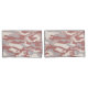 Complemente a sua decoração moderna com este design ultra-chic e essencial para o conjunto de estacas que mostra um padrão de camuflagem neutro de um lado e faixas verticais finas em azul claro de aço, este rosa, cinzas escuras e cor castanho rosado ao contrário. O sotaque perfeito para qualquer decoração, este conjunto de estacas macio e atraente será um ponto focal no seu quarto. Coordenando cobrir de edredão disponível.