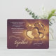 Juntos, Wedding Invitation (Versão 2) por Multiform, apresenta um arranjo elegante de corações em ouro tridimensionais sobre fundo de raios luminosos radiantes. Este design moderno faz parte de uma série que pode ser facilmente personalizada com sua data de cerimônia, hora, local e site de registro de casamento.