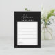 Bem-vindos à nossa design de Cartão de Conselheiro para Casamento de Script Moderno Negro, onde o minimalismo moderno encontra a arte da caligrafia. Esta estética curada traz um ar de sofisticação para o seu dia especial - com uma reviravolta de feitiço, charme casual. A combinação de uma simples tipografia com uma letra na moda adiciona uma personalidade única ao seu casamento. Este design clássico oferece um aspecto eterno e polido que é perfeito para primavera, verão, outono ou casamentos no inverno. Uma simples paleta subestimada de fundos pretos e texto branco cria o cenário neutro perfeito para sua celebração. Torne seu casamento muito elegante com nossa adorável coleção de Script Moderno. Tal como acontece com todos os nossos designs, se tiverem perguntas ou pedidos especiais, por favor, perguntem.
