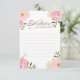 Um cartão branco "Advice for the bride and groom" com peonias e rosas cor-de-água rosa. Isto será perfeito para primavera e chá de fraldas "É uma Rapariga". Estão disponíveis um convite de chá de fraldas e acessórios correspondentes.