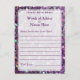 Uma atividade divertida para qualquer evento - convide os convidados a dar sabedoria ou conselhos que certamente serão apreciados. Os cartões de aviso ajudam a fazer uma bela manutenção. Este cartão apresenta um adorável plano de fundo roxo confetti. Projetado por Amelia Carrie e vendido através de zazzle.com/GlitterInvitations e GlitterInvitations.com Nota: Este é um impressão de arte gráfica e não contém nenhuma falha.