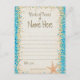 Uma atividade divertida para qualquer evento - convide os convidados a dar sabedoria ou conselhos que certamente serão apreciados. Os cartões de aviso ajudam a fazer uma bela manutenção. Esta carta apresenta um brilho de confete oceânico com fundo de areia. Projetada por Amelia Carrie e vendida através de zazzle.com/GlitterInvitations e GlitterInvitations.com Nota: Esta é uma reprodução de arte gráfica e contém SEM brilho sujo.