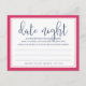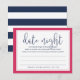Deixem os chás de panela compartilharem suas ideias noturnas favoritas para o casal feliz, com esses cartões doces. Chic e preppy cor-de-rosa e design de marinho apresentam "date night" em letras modernas de escrita de caligrafia e um poema curto instruindo os hóspedes sobre o que fazer. Personalize com o nome e a data do chá da noiva e coloque uma pilha na entrada do evento, passe-as ou deixe uma em cada lugar. Faz uma bela manutenção para a noiva, e um alternativo excelente para o pote noturno da noite!