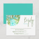 A folha de monstera azul e verde havaiana é colorida neste cartão de resposta. O cartão de inserção de RSVP é uma bela adição aos convites para casamentos náuticos tropicais. Versátil para a turquesa e cores azuis de casamento.