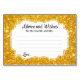 Estes elegantes conselhos de casamento e cartões de desejos de ouro serão a adição perfeita à sua recepção de casamento. Este design apresenta um quadro de ouro cintilante com o texto "Conselhos e Desejos para o novo Sr. e Sra." numa combinação de fontes simples e caligraficas. O cartão tem espaço disponível para os hóspedes abandonarem os seus parabéns, conselhos de casamento e o(s) seu(s) nome(s). Sinal de ouro correspondente disponível.