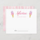 Cartões de chá de fraldas para meninas, cor-de-rosa-branco, com ilustração aquosa de sorvete rosa e roxo. Peça aos hóspedes para preencherem este cartão durante o chá. Será um bom excelente!
