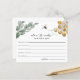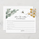A placa de atividade do chá de panela apresenta aquarela eucalipto verde e abelhas ouros. O cartão de chá de panela solicita aos hóspedes que compartilhem conselhos e desejos para o casal.