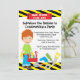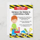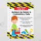 Comece a comemorar com este adorável conserto que ele convida. Perfeito para aquele garoto de aniversário! Ele tem uma borda estriada diagonal amarela e preta no topo e na base. Há um sinal vermelho que diz "Nós podemos consertá-lo". Tem um garoto de cabelo vermelho segurando uma caixa de ferramentas vermelha. Há ferramentas como: furadeira, serra, alicate, chave de fenda, e um parafuso na parte inferior do convite. Veja os muitos outros designs nesta linha. ©babystar
