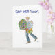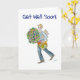 Um cartão 'Get Good Logo' com um jovem trazendo fruta, flores e revistas para alguém doente; de uma pintura aquosa de Judy Adamson. O dentro é o vazio deixado para a sua própria mensagem.