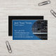 Um console de mixagem de som com todos os botões e switches formam o fundo principal dessa imagem de cartão de visita. Seu nome e detalhes aparecem sobre um fundo azul de semisesfera à esquerda. Este cartão de visita é especialmente adequado para engenheiros de som, engenheiros de gravação e DJs, mas também é adequado para qualquer pessoa na indústria de música ou áudio.