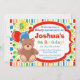 Faça a um partido o special beary com este convite colorido do aniversário! O arco-íris das características listra e pontilha o fundo e um urso bonito que mantem balões gráficos.