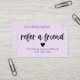 Cartões de referência roxos e pretos modernos que podem ser personalizados com seus detalhes comerciais no verso.